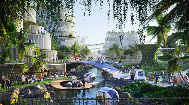 城市化进程的加速,带动了一栋栋高楼大厦的建成,同时让城市土地资源的供给和需求之间呈现不平衡的发展态势。另一方面,全球变暖和气候异常也给建筑师提出了全新的挑战,尤其是海平面的上升,加剧了人们对于城市环境的担忧。在这样的大背景下,越来越多设计师开始将目光从陆地转向海洋,试图通过打造漂浮式建筑,缓解全球住房空间紧缩的危机。就像科幻小说中的情节一样,借由天马行空的创意而催生的漂浮式建筑,或许可以带领人们去发掘更广阔的世界。
